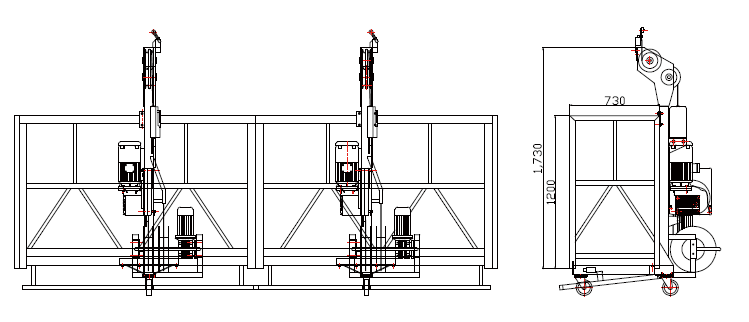 Cada unidad contiene mecanismo de suspensión, plataforma de suspensión, sistema de elevación eléctrico y dispositivo de protección de seguridad, cuerda de alambre de acero, cable y contrapeso.